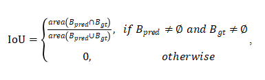 其中为两个框的交集面积,是为两框并集面积。如果没有对应目标,那么IoU被赋值0。