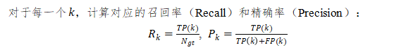 (3)累积统计:计算每一步的累积TP数量TP(k)和累积FP数量FP(k) ,其中k为当前类遍历到的预测框索引。