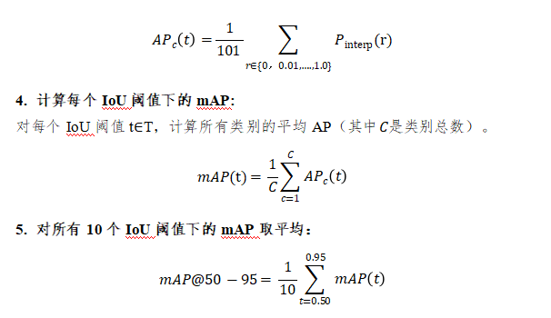 3. 单类别 (c) 的AP(Average Precision)在某个阈值t∈T下的计算: