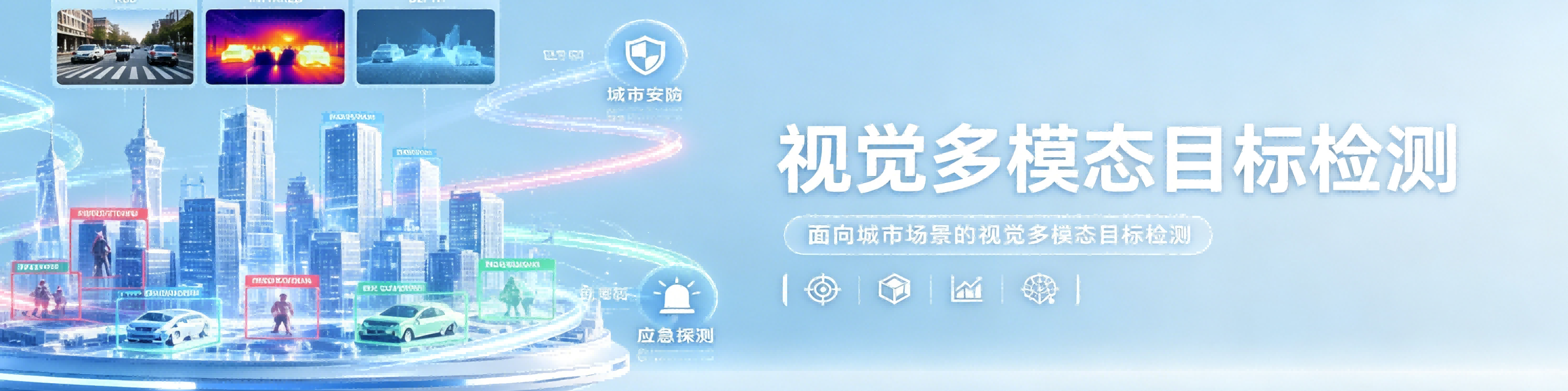 本赛题聚焦于复杂城市场景下的多源异构智能视觉感知。在城市各种场景中,低照度、目标遮挡及低纹理背景等极端条件频繁出现,导致传统单一可见光模态难以稳定工作:天空为背景的无人机检测、交通监控中人车目标纹理模糊;安防巡检面临复杂背景遮挡与远距离小目标检测难题;应急救援则在朦胧低光环境下完全丧失可见光感知优势。本赛题通过引入深度与热红外模态,利用深度信息的几何结构约束解决遮挡与尺度估计问题,借助热红外信息的温差特性在弱光或无光条件下突出关键目标,实现多源数据的优势互补。该方面研究可以提升系统在极端环境下的鲁棒性与准确性,其成果可服务于智慧交通、自动驾驶、公共安全及应急管理等关键领域,对推动城市智能化治理与社会安全保障具有重要的应用价值。